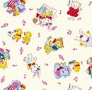 みんなが大好きなベビーピンクに赤と黄色のうさぎ。 -